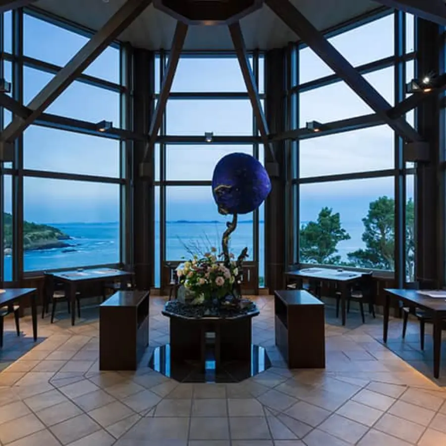 ご夕食は、どこまでも続く大海原の静けさを、ご朝食は海面に輝く「銀鱗」をご覧いただきながらお料理をお楽しみいただけます。