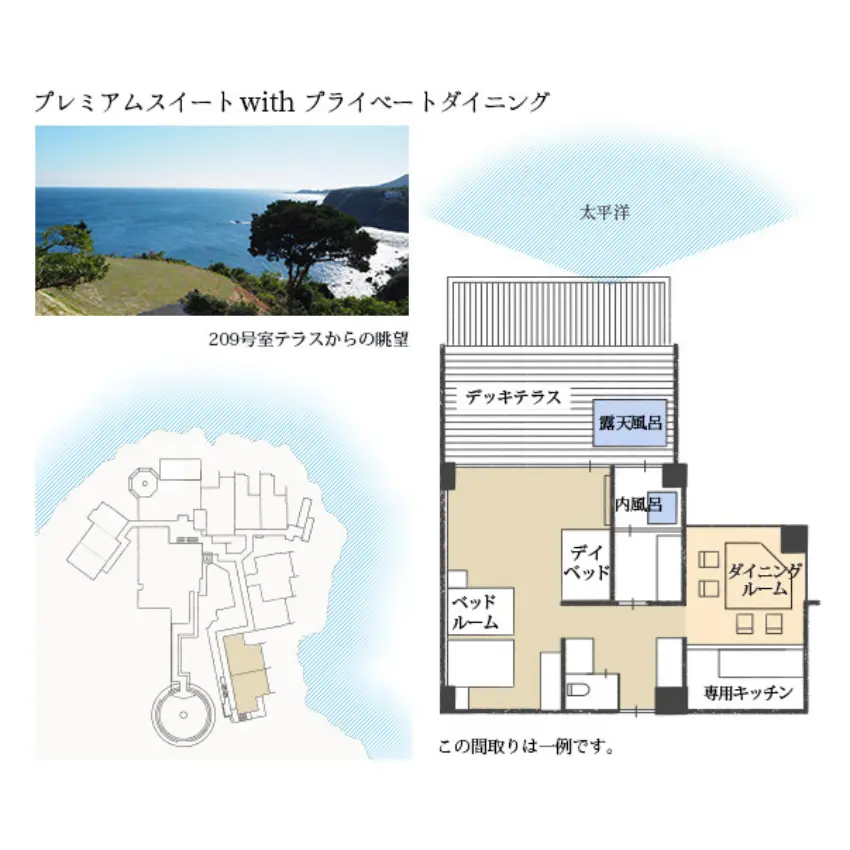 間取り:ツインベッド、デイベッド、専用ダイニング、露天風呂
