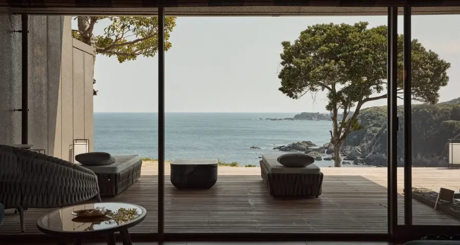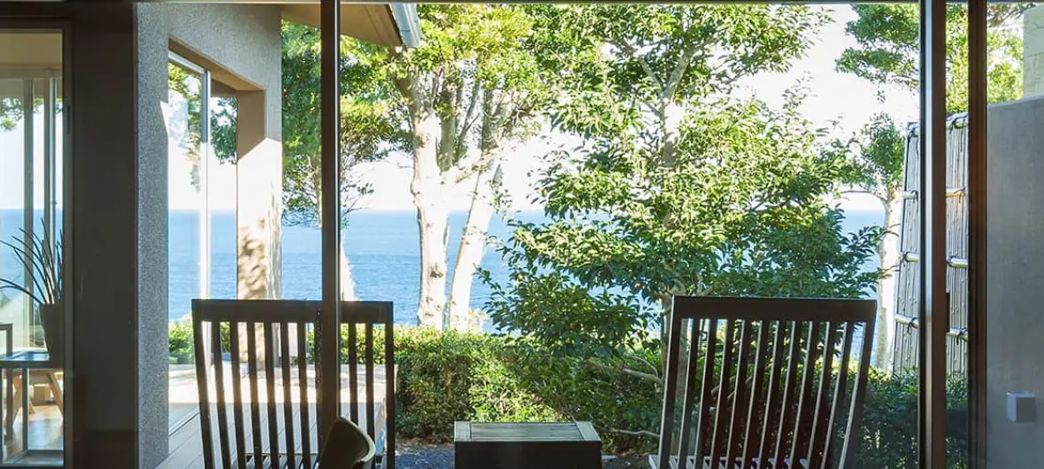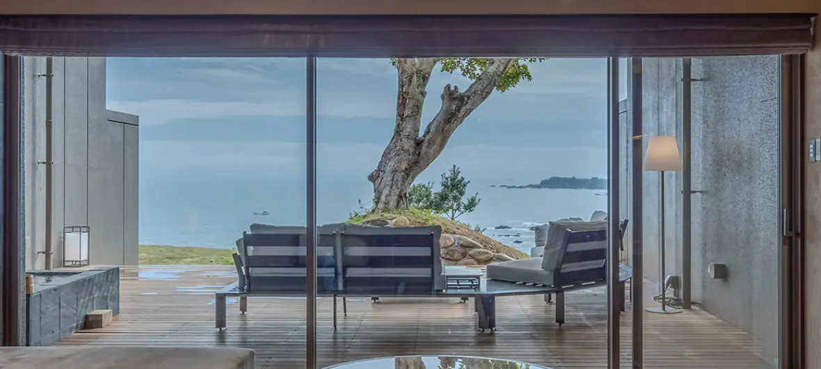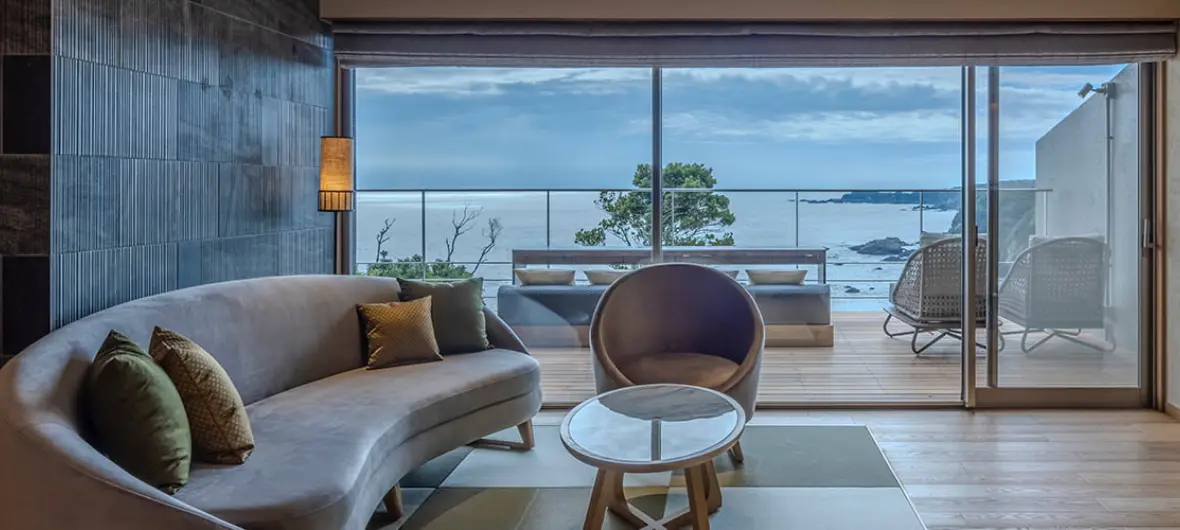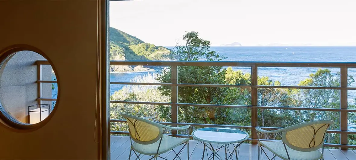 御宿The Earthのゲストルームの中では最もシンプルなデザインですが、海に最も近く、入江の穏やかさや波しぶきの激しさなどを間近で感じていただけます。