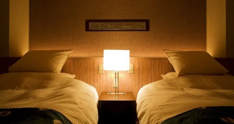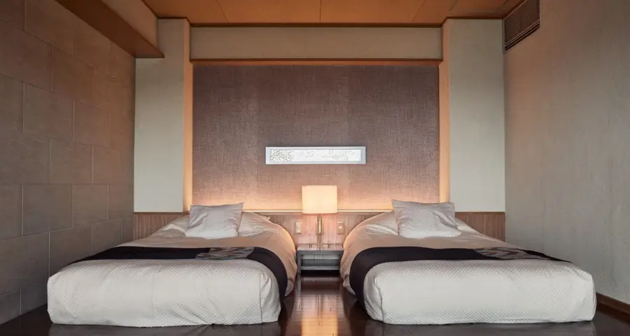 ツインベッドとハリウッドツインベッド、露天風呂を備えた客室100平米の洋室です。